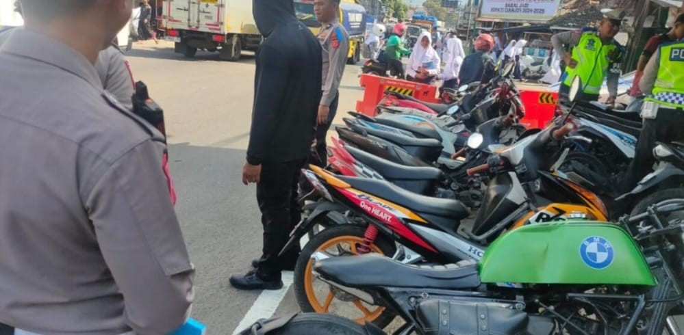 Pinusnews.id - Sebanyak 30 sepeda motor berknalpot brong diamankan Satlantas Polres Cianjur saat melakukan razia di Jalan Raya Sukabumi, Warungkondang, Kabupaten Cianjur, Rabu (25/7/2024).