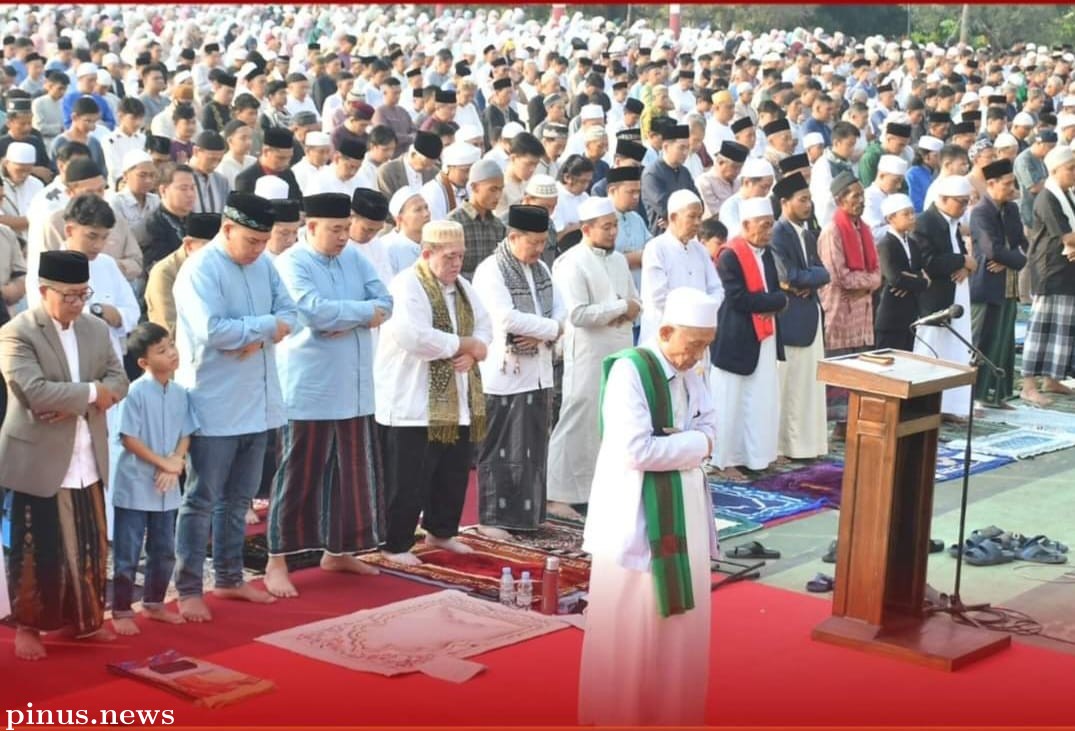 Pinusnews.id - Bupati Cianjur Herman Suherman mengawali Hari Raya Idul Fitri 1 Syawal tahun 1445 Hijriah dengan menunaikan Salat Idul Fitri bersama masyarakat Cianjur, di Taman Alun-Alun Masjid Agung Cianjur, pada Rabu (10/4/2024).