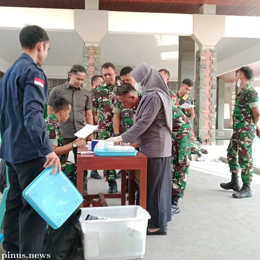 Keterangan Gambar : BNN Kabupaten Cianjur melakukan test urine kepada para anggota Kodim 0608 Cianjur.