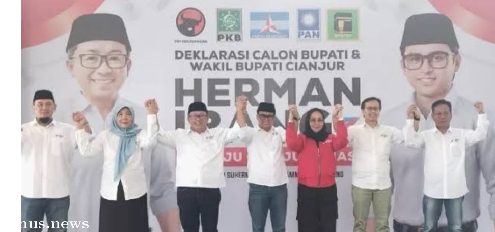 Pinusnews.id - Herman Suherman yang kini masih jadi Bupati Cianjur, rupanya ingin berkuasa 2 periode, karena ikut kembali menjadi bakal calon Bupati Cianjur pada pemilihan tahun 2024 sekarang ini. Dan buktinya, 5 partai politik telah mengusung Herman Suherman-Ibang yang bakal calon Bupati dan Wakil Bupati Cianjur tahun 2024, dengan menggelar deklarasi di salah satu hotel di Cipanas, Kamis (30/5/2024).