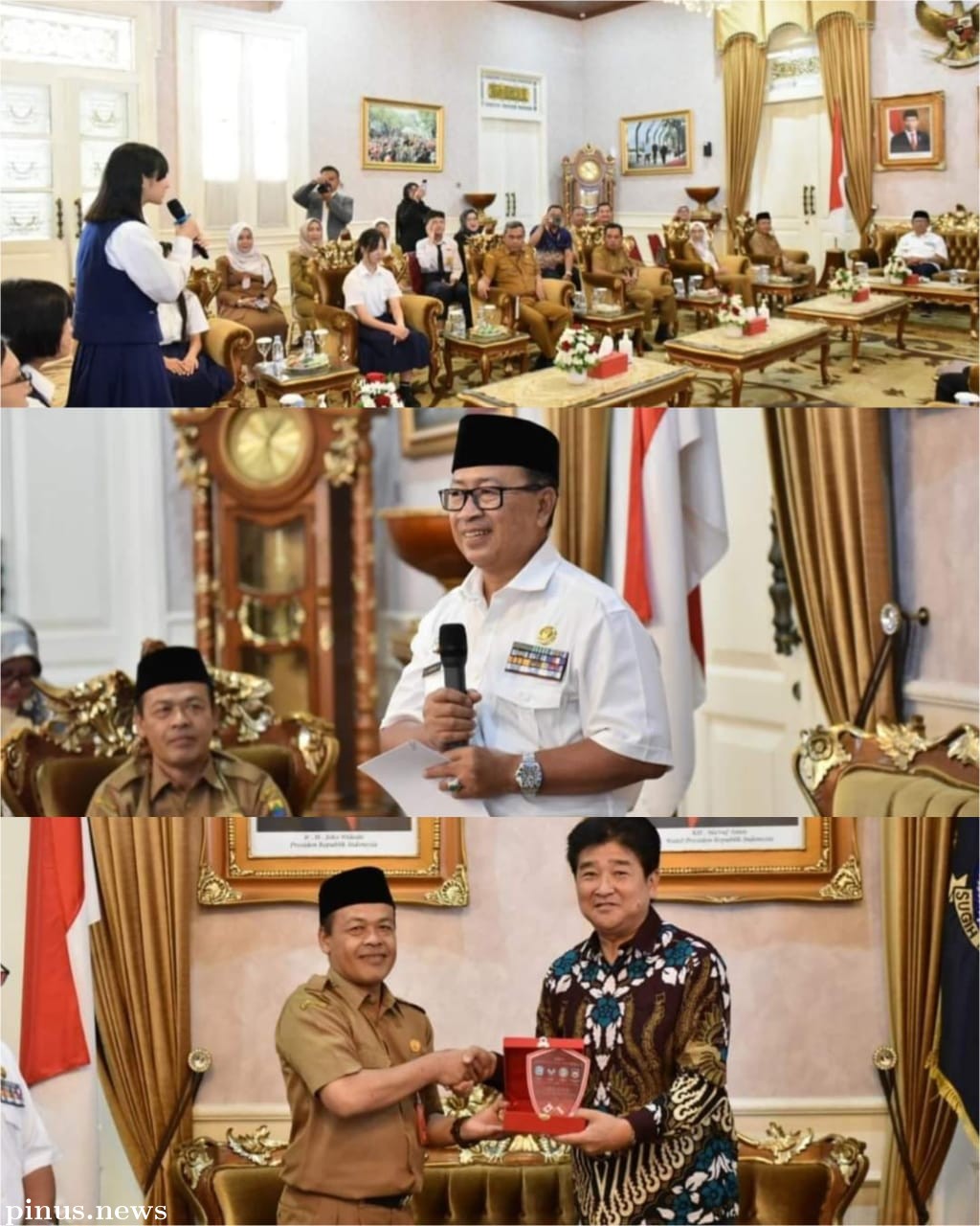 Pinusnews.id - Bupati Cianjur Herman Suherman menghadiri Pelepasan Pertukaran Budaya dan Pelajar dengan Pemerintah Yachimata, Jepang, yang dilaksanakan di Pancaniti, Pendopo Cianjur (5/8/2024)