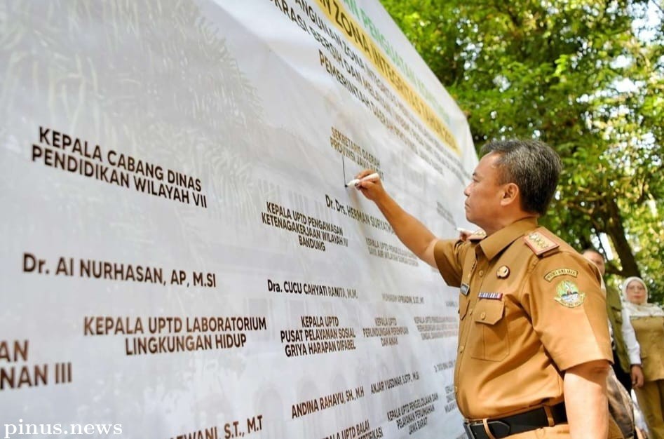 Pinusnews.id - Sekretaris Daerah Provinsi Jawa Barat Herman Suryatman menghadiri Pencanangan dan Penguatan Komitmen Pembangunan Zona Integritas Menuju Wilayah Bebas dari Korupsi dan Wilayah Birokrasi Bersih dan Melayani (WBK/WBBM) pada unit kerja di lingkungan Pemda Provinsi Jabar.