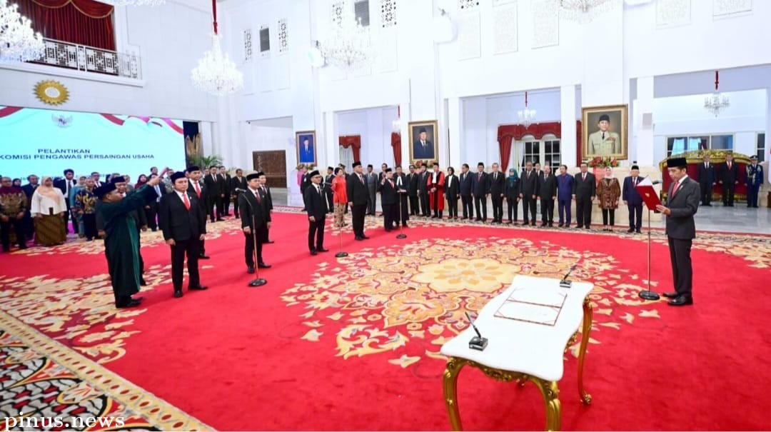 Pinusnews.id - Presiden Joko Widodo melantik dan mengambil sumpah jabatan Anggota Komisi Pengawas Persaingan Usaha, pada Kamis, 18 Januari 2024, di Istana Negara, Jakarta. Pelantikan tersebut dilakukan berdasarkan Keputusan Presiden Republik Indonesia Nomor 8/P Tahun 2024 tentang Pemberhentian dan Pengangkatan Anggota Komisi Pengawas Persaingan Usaha yang ditetapkan di Jakarta pada 8 Januari 2024.