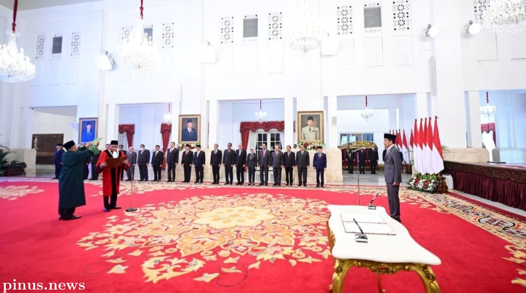 Pinusnews.id - Presiden Joko Widodo menyaksikan pengucapan sumpah calon hakim konstitusi Ridwan Mansyur sebagai hakim konstitusi di Istana Negara, Jakarta, pada Jumat, 8 Desember 2023. Ridwan Mansyur menggantikan Hakim Konstitusi Manahan Sitompul yang telah memasuki usia pensiun.