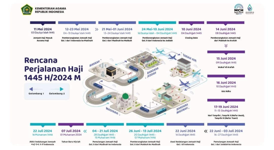 Keterangan Gambar : Rencana Perjalanan Haji 1445 H / 2024 M (Infografis: Rizki)