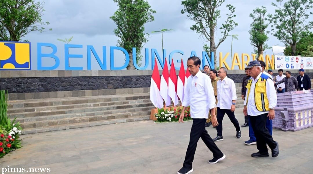 Pinusnews.id - Presiden Joko Widodo meresmikan Bendungan Karian yang berada di Kabupaten Lebak serta Instalasi Pengolahan Air (IPA) Sitanala kapasitas 500 liter perdetik di Kota Tangerang, di Lokasi Bendungan Karian, Kabupaten Lebak, Provinsi Banten, pada Senin, 8 Januari 2024. Presiden Jokowi menyebut bendungan yang memiliki daya tampung sebesar 315 juta meter kubik dengan luas genangan 1.773 hektare tersebut mampu memberikan sejumlah manfaat kepada masyarakat di wilayah Banten dan sekitarnya.