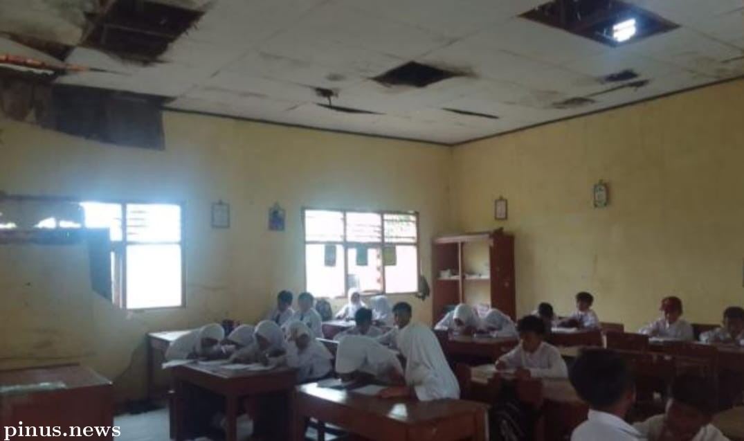 Pinusnews.id - Satu unit dari tiga lokal ruang belajar (rumbel) di SD Parungponteng yang berada di wilayah Desa Rawabeulut Kecamatan Sukaresmi, kondisinya rusak parah.