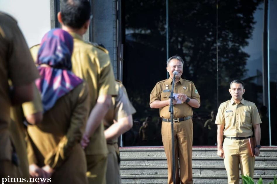 Pinusnews.id - Sekretaris Daerah Provinsi Jawa Barat Herman Suryatman memimpin apel pagi di Lingkungan Sekretariat Daerah (Setda) dan Badan Pengelolaan Keuangan dan Aset Daerah (BPKAD) Provinsi Jabar di Gedung Sate, Kota Bandung, Senin (6/5/2024). Dalam apel pagi tersebut, Herman memotivasi Aparatur Sipil Negara (ASN) di Lingkungan Setda dan BPKAD Jabar untuk melaksanakan tugas pokok dan fungsi dengan prima, sekaligus menjadi motor penggerak pembangunan daerah.