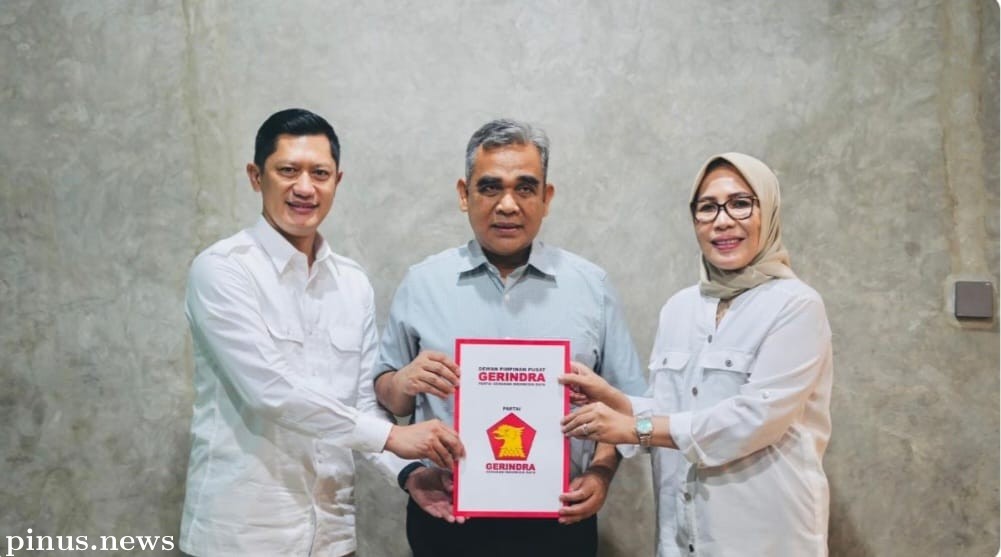 Pinusnews.id - Sekretaris Jenderal (Sekjen) Partai Gerindra Ahmad Muzani, menyerahkan surat rekomendasi kepada Deden Nasihin-Neneng Efa Fatimah sebagai pasangan Calon Bupati dan Wakil Bupati Cianjur pada Pilkada 2024.
