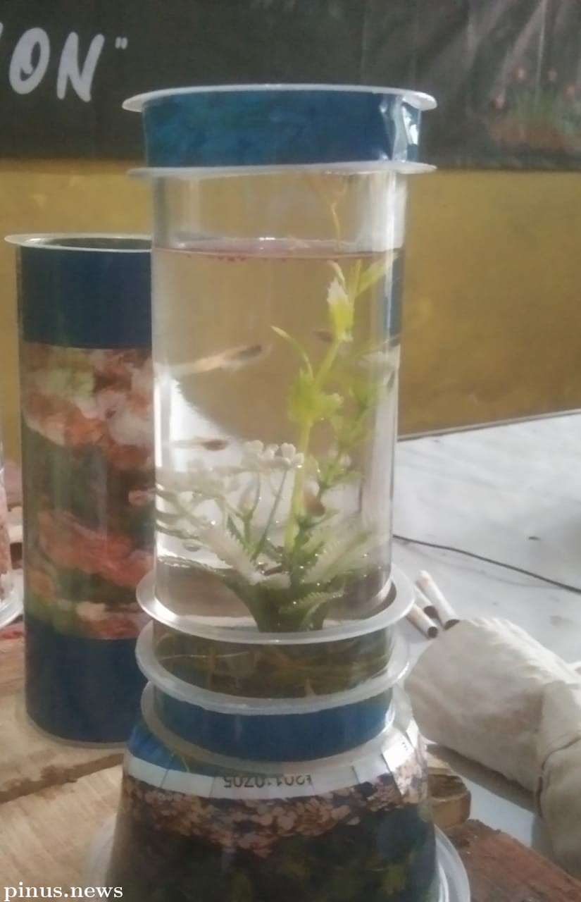 Keterangan Gambar : Aqurium mini yang dibuat dari bahan limbah sampah.